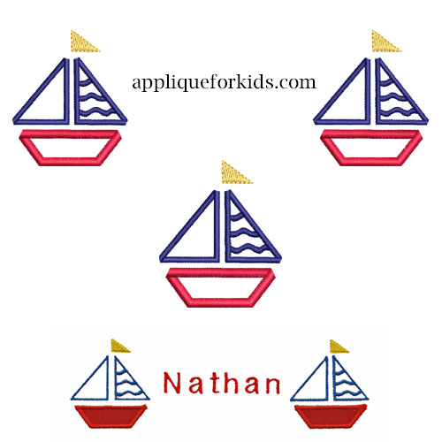 Perfect for collars, inset, yokes, bags, towels, etc. The single boat would be cute on a pocket or the hem line of shorts.. There is app. 2.88" spacing to add a name or initials on the double boat design.