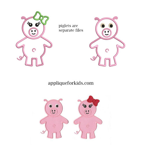The small size, for the 4x4 hoop, girl piglet, will have an embroidery bow.