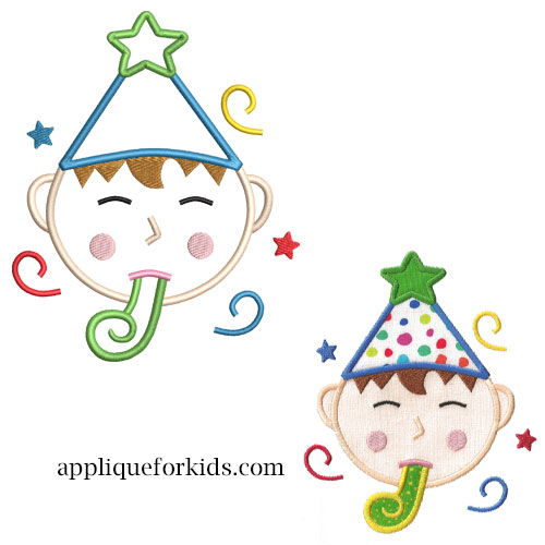 You know how kids love those party blowers! This will make them giggle! Match their own hair color. The small for the 4x4 hoop will have an enbroidery star on the hat.