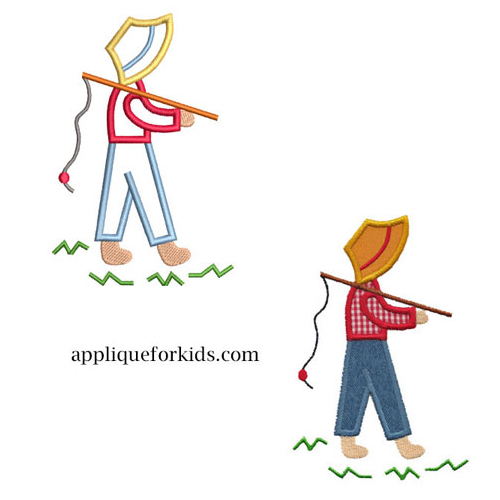 Little boys love to go fishing! This would be cute to put the boy in the bodice area & put the grouped or single fish on a pocket! The single fish would be cute on a collar too. Comes with 3 fish grouped & then a single fish & the boy & pole in two sizes. The fish are embroidery & not an applique.