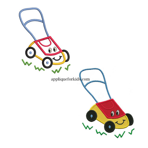 The small mower does not have applique wheels, it has embroidery wheels.