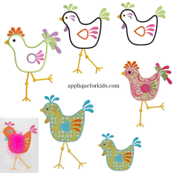 Like the smaller set, these are the funest mod chicks ever! They just make you laugh! Perfect for garments, bags, pillows, curtains,etc. They come with & without the legs.