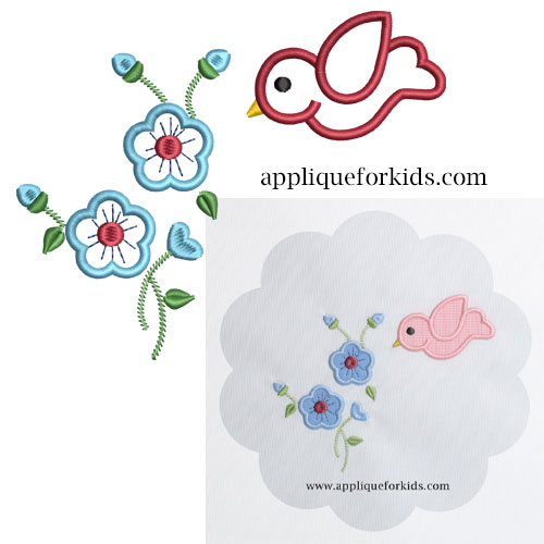 Sweet and fun design! Coordinates with Fabric Finders bird and flower fabric that comes in 2 colorways. It would be SO cute to use the printed fabric for shorts or capris with a whit top with this applique! There is a matching mini embroidery fill design if you need a smaller application.