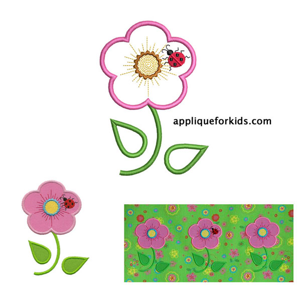 Need a pretty flower? Watch out for that bug! The bug is set to sew last in case you do not want it. This flower looks great when repeated several times.