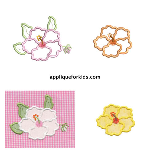 Single flower is great for collars or pockets. The hibiscus with leaves would be pretty on any project.