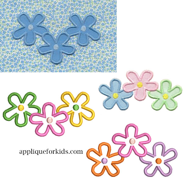 Comes with 3 daisies grouped in 2 different shapes & one single daisey. Use the shape that you prefer or what's best for your shape of collar. Put the single one on a pocket. These would be cute on the hemline also. They are set for different colors so you can use any scheme you want - all 3 the same, 2 the same, all 3 different, depending on your fabric.
