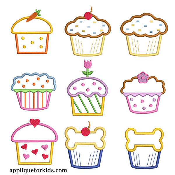 Need a cupcake? Got you covered with these? Yes, there is even one for the dogs? Be sure to use the "next photo" button under the photo to veiw them. A total of 10 cupcakes. All fit a 4x4 hoop.