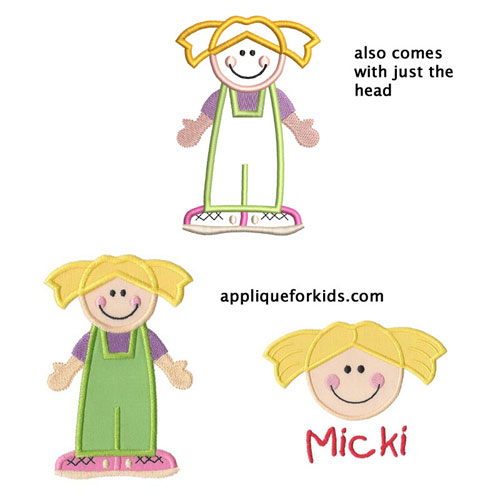 How cute is Micki! Match the hair color to your little girl - what fun! Add a name to just the head - even more fun! Add a group of heads to match your kids or grandkids - the greatest fun ever!