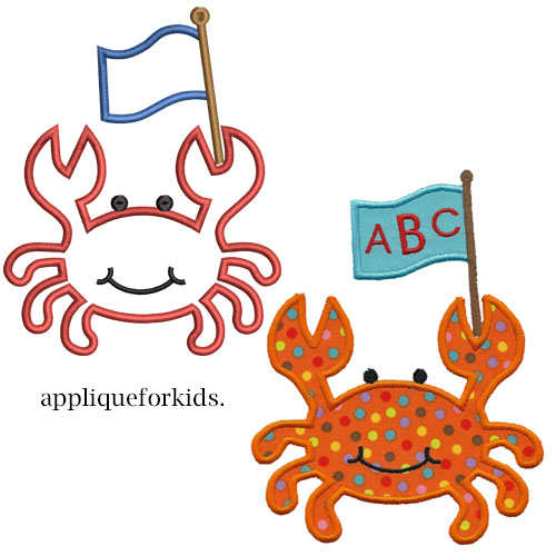 The small crab for the 4x4 hoop will have embroidery legs, as it would be too difficult to trim in between them.