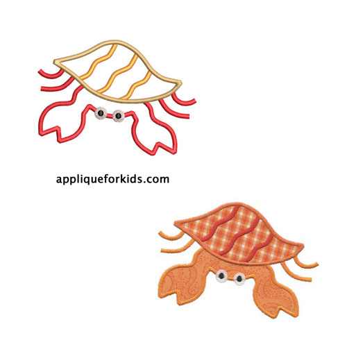 Whether found on a beach or at the pet store, kids are fascinated with the hermit crabs. This is a very easy 2 stop applique design.