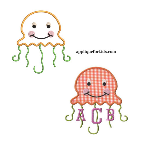 Fun jellyfish!  Very easy & fun 1 piece design! Fun to add initials on the tenicles!