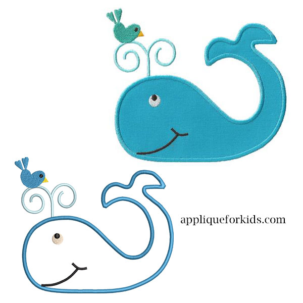 Whale is really enjoying her visitor! Very cute & fashionable. Easy 1 stop applique design!