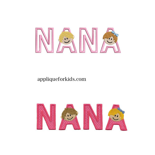 Ok Nana...this is one for you! Have fun wearing these little grand kids! Comes in a regular & large size already grouped; & then seperate for the 4x4 users. You could do the seperated letters placed up & down slightly for xtra fun!