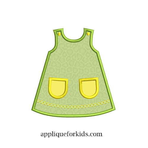 Classical style jumper. The pockets are an applique - but could be just an outline. Combine this fun design with any of the other matching dresses for a very special & FUN quilt!