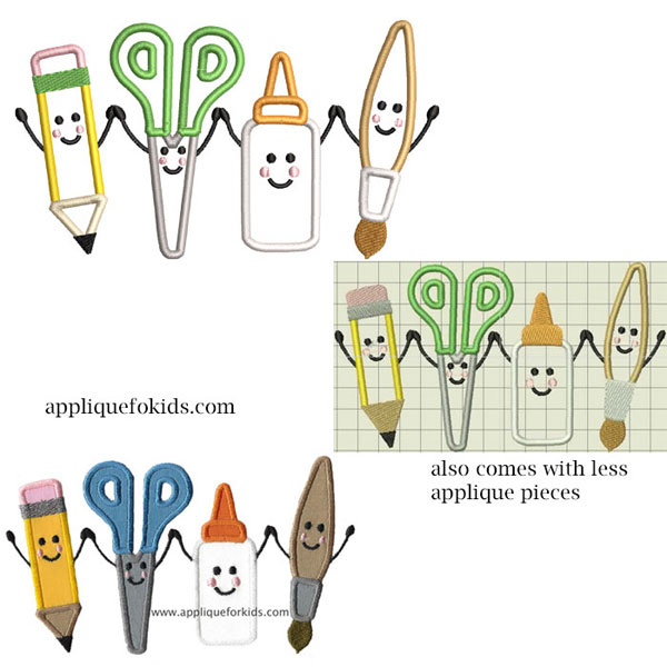 Make going back to school FUN with this whimsical design! Comes with the pieces as applique & then with applique & embroidery pieces - just in case you do not want to do that many applique pieces. Fun from clothing to book bags, etc.