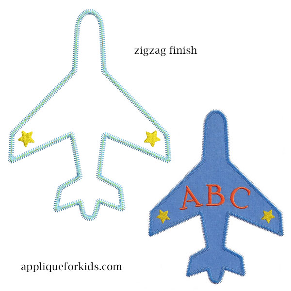 Fun zigzag airplane! Oh so simple one piece applique! Perfect for adding a name or initials!