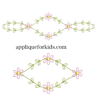 Sweet outline daisy design. Perfect for many projects! Apply the large vine on a hemline with the smaller one on a yoke or collar. Give your project a hand stitched look!