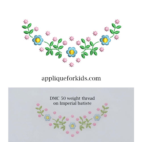 Sweet little flowers and bud dots....perfect for so many items. Small enough to fit on most yokes, bodice, collar, pocket, neck line, etc.