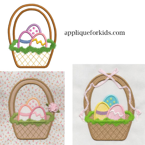 Your little one will like wearing an Easter basket while waiting for the Easter Bunny to deliver the real one! Really cute to finish the handle with a ribbon or bow. LInes on basket are set for a different color in case you want to skip the lines. The trims on the eggs are set to sew last in case you do not want these.