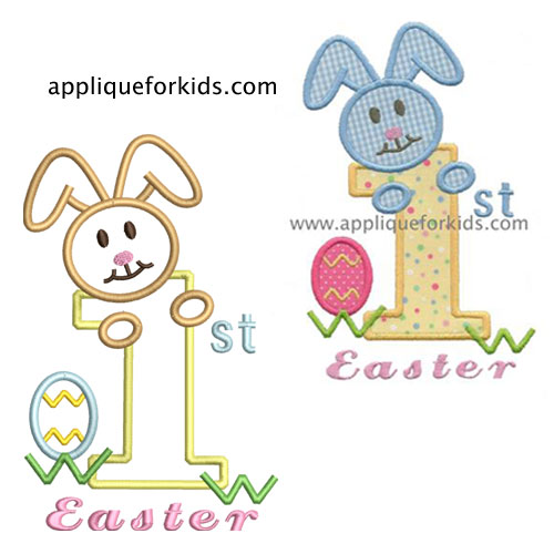 The small size, for the 4x4 hoop will have the word Easter, going vertically down the number one.