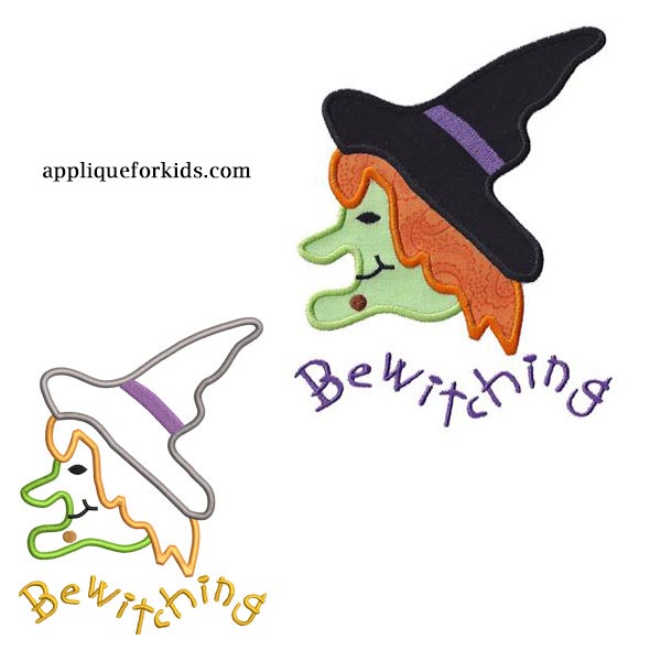 Ohhh....she doesn't look too scary! But she sure has a big mole! This is just for fun! Comes with & without the word- bewitching. The small size for the 4x4 hoop does not have the word.
