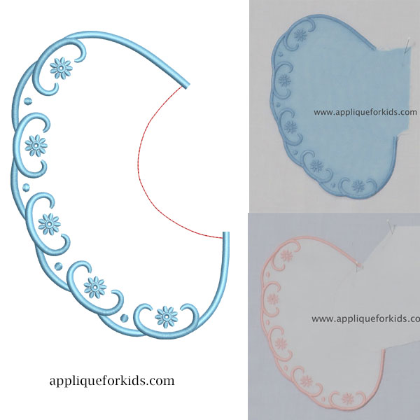 This stitches out beautifully! Use it tone on tone or a color thread on white or visa versa. Easy to make & fit to your pattern. Stitched in the hoop just like an applique - so there are no "eyelashes"! Directions & photos are included to help you learn to fit collar to your pattern. Very easy to do!