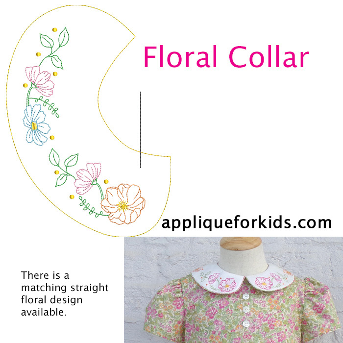 Create a special garment with this easy embroidery floral collar. Perfect for working with thread colrs to match a print. You will finish the edge with your choice of trim.
