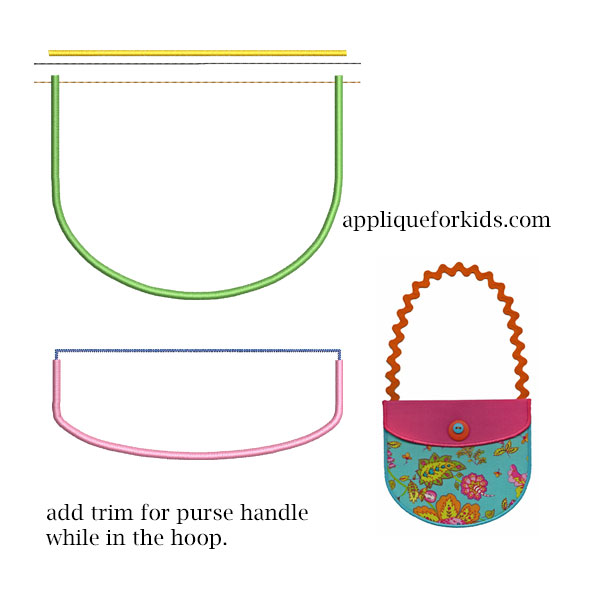 What fun this purse pocket is! The flap lifts up for the purse pocket! Really cute to add a button or a sew on mediallion to the flap! Your little girl will like this one! Easy to do, just like an applique...it does take two hoopings, one for the flap & one to complete the purse pocket. Photos included.