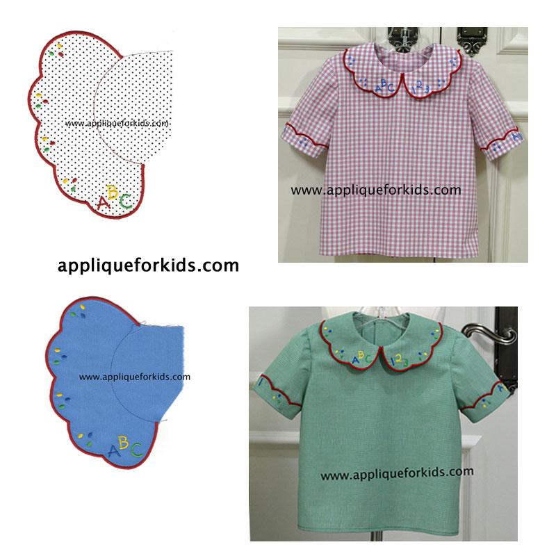 This makes for a very cute blouse for back to school or just for fun - because little girls love ABC's & 123's! Comes with easy instructions & photos. Completely made in the hoop! The cuffs stitch at the same time. There is a coordinating school house pocket - you can find this in the same category.