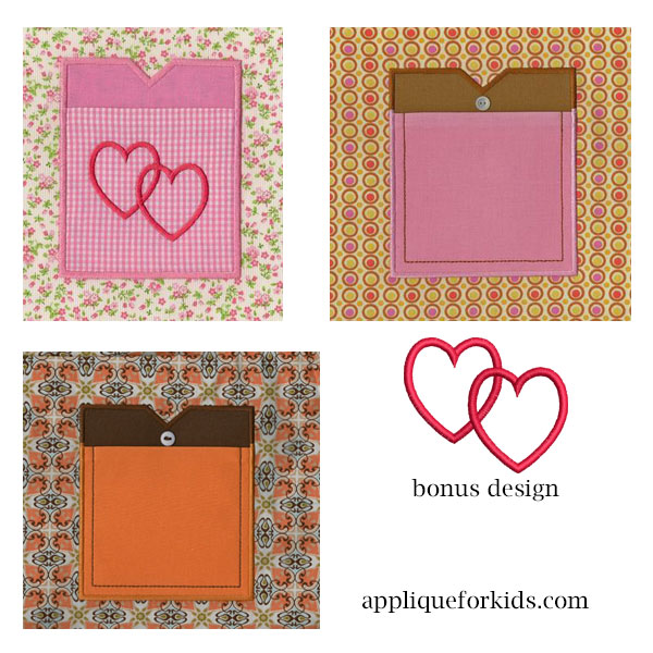 Need a perfect pocket? Here they are! Very quick to make! Real functionable pocket! Bonus double heart embroidery design included, just in case you want to add it to your pocket!