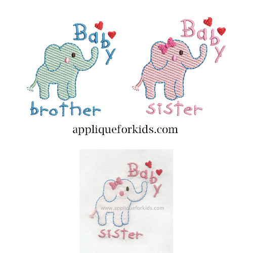 So sweet little baby elephant! This design can stand alone or coordinate with the Big Sister or Big Brother Elephant design. This is great if you want baby to have a softer look than the big sibling.