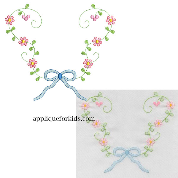 Sweet & easy shadow work by machine. Great for slips, hemlines, yokes, etc. Add an initial to make it personal. Try it in all white for a Christening gown.