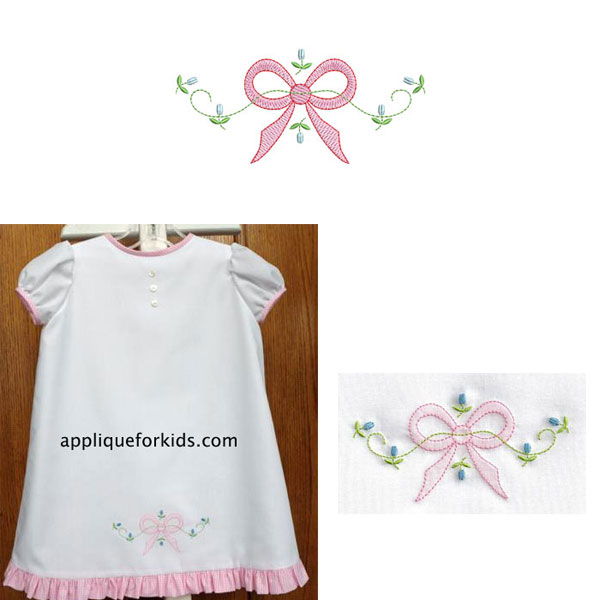 BONUS: This design comes with a free button down the back day dress/gown! This is an E-pattern in a PDF format that you will print out & tape together. It is VERY quick & easy! It is designed so the back side of the shadow work/embroidery does not show. No need to use an iron on interfacing on the back side! Best of all, you will not have to make a seperate slip - less for baby to tangle up in. The pattern is in the design folder.