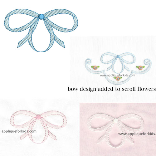 Very pretty & easy machine shadow work bow! This would make a beautiful collar, yoke, corner of a baby blanket,day gown,accessory items, etc.