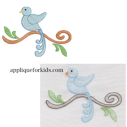 So sweet little bird with it's curly tail! Quick & easy shadow work by machine embroidery! Comes with directions.