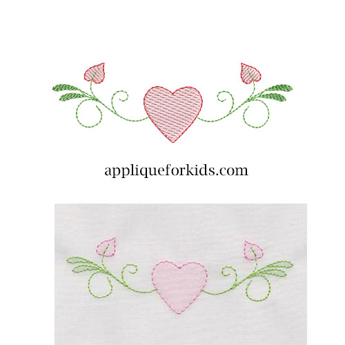 So sweet! Great for Valentines or for just a sweet design. Perfect for collars, yokes, baby gowns. Try repeating it across the bottom of a yoke dress. Very quick & easy!
