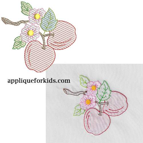 Pretty apple design. Just as pretty used as an outline design, by skipping the "shadow step". This would make for a pretty kitchen towel - with a vintage look. I think it would be so sweet on the bib of a little girl's pinafore....lot's of application's!