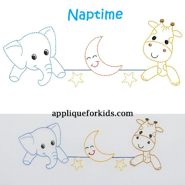 Looks like elephant & giraffe aren't ready for nap time! Cute on lots of applications for baby and toddlers.
