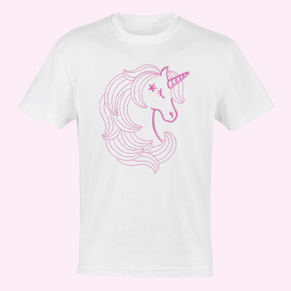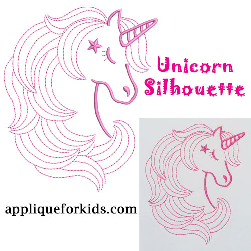 Girls will love this magical unicorn silhouette design! Outline design stitches quickly and is softer to wear.