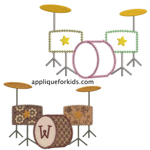 Really fun drum set for working with coordinating fabrics! Add an initial to the bass drum for xtra fun!